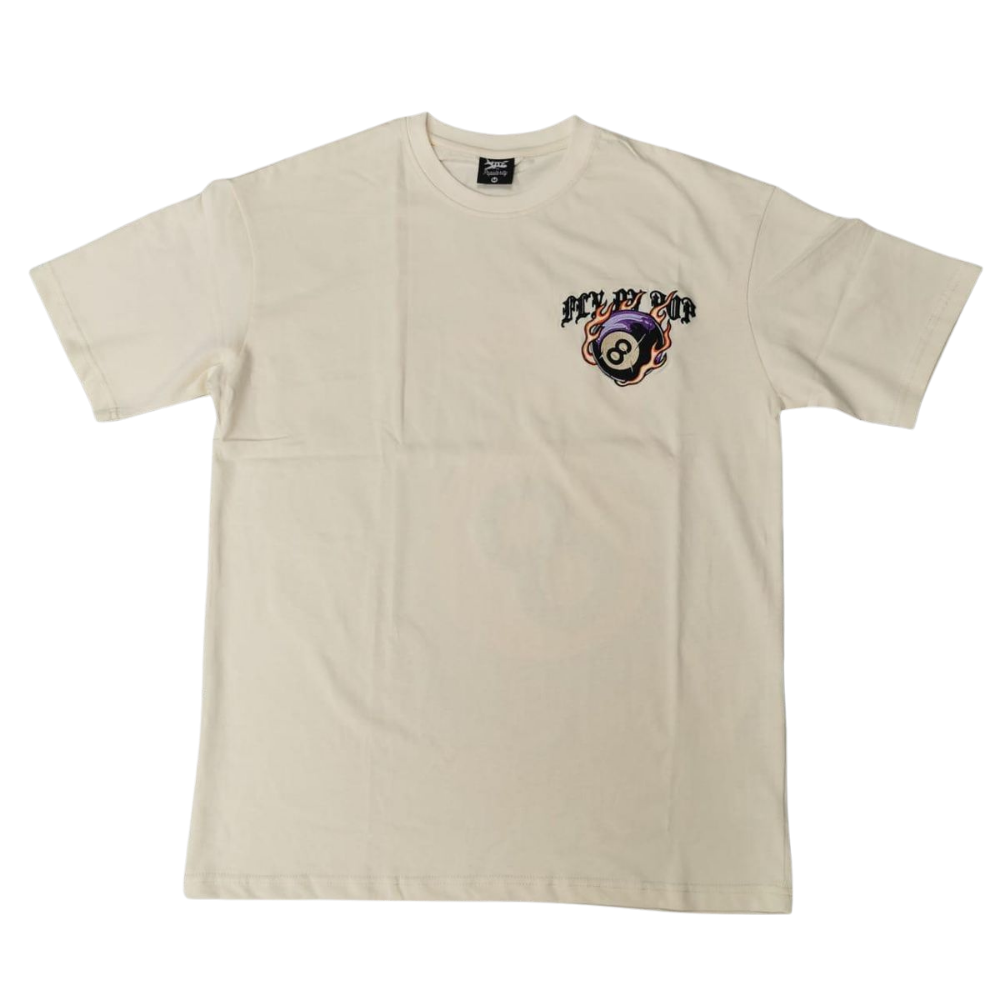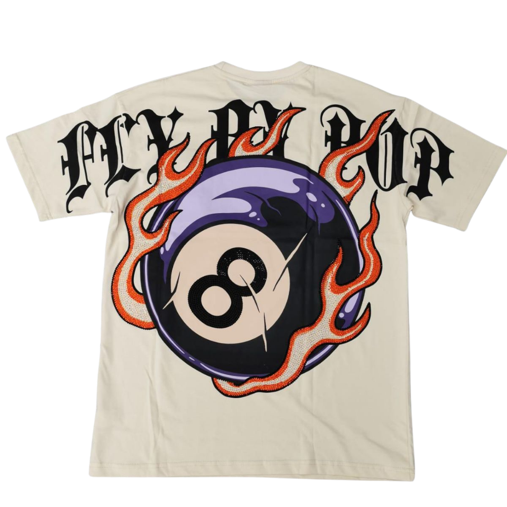 The Fly By Popularity Billiard Ball T-Shirt in Cream combines classic streetwear with a smooth, neutral tone. Featuring a bold billiard ball design, this tee delivers urban edge and laid-back style. Its comfortable fit and clean cream color make it a versatile piece that elevates everyday looks with effortless cool. Perfect for those who want to keep their vibe fresh while repping a standout graphic.