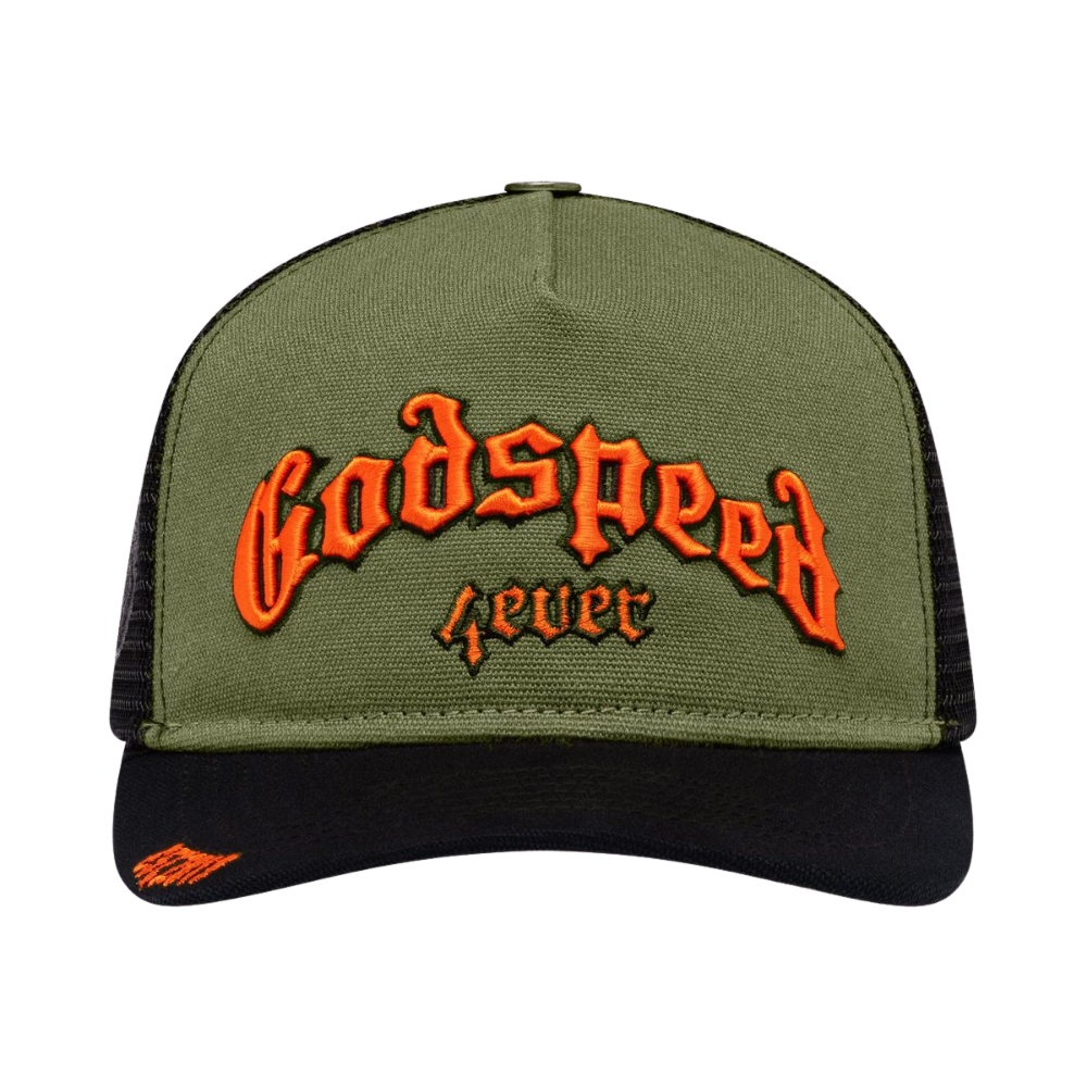 The Godspeed 4ever trucker hat is back in turquoise & black packaged in a limited edition box + a 3 piece pin set.